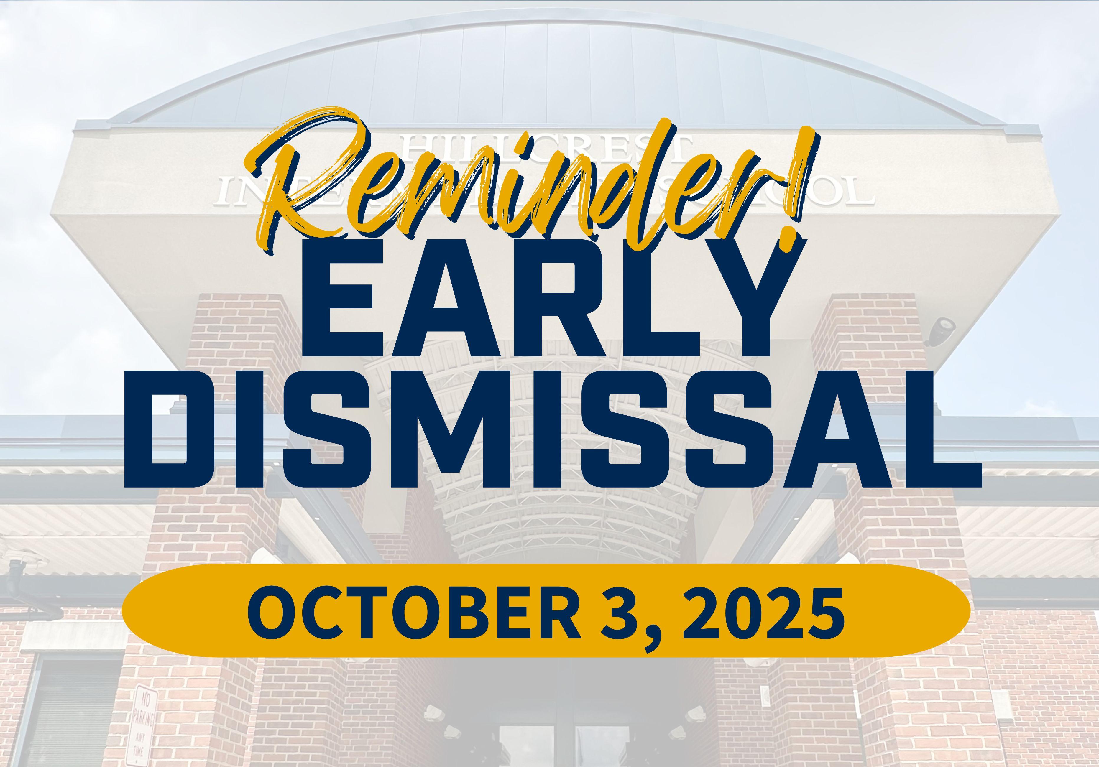 Early Dismissal We will have an early dismissal on Friday, October 3rd. Dismissal will begin at 12:55 PM